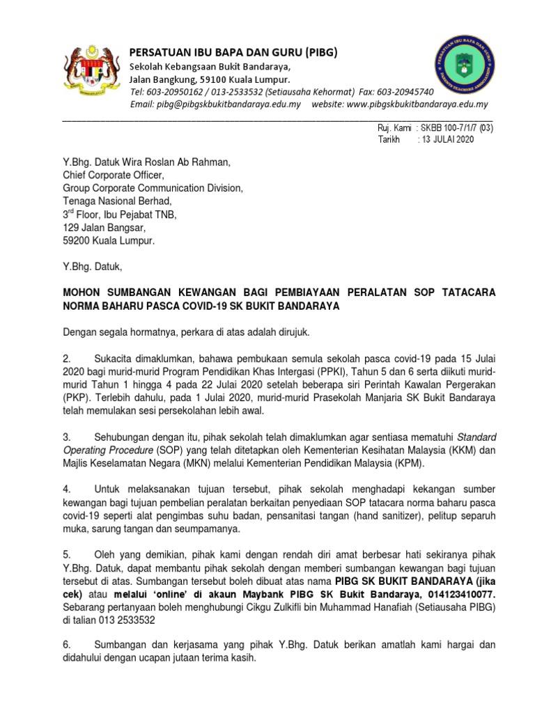 Surat Tnb Sumbangan Covid Pdf Pdf