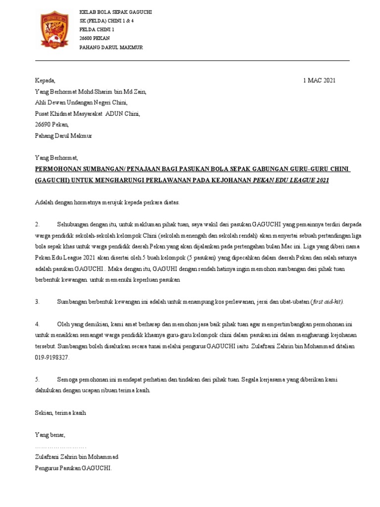 Surat Mohon Sumbangan Sesuai Menjadi Bahan Rujukan Sekolah Kebangsaan Sungai Terap Badan Studocu